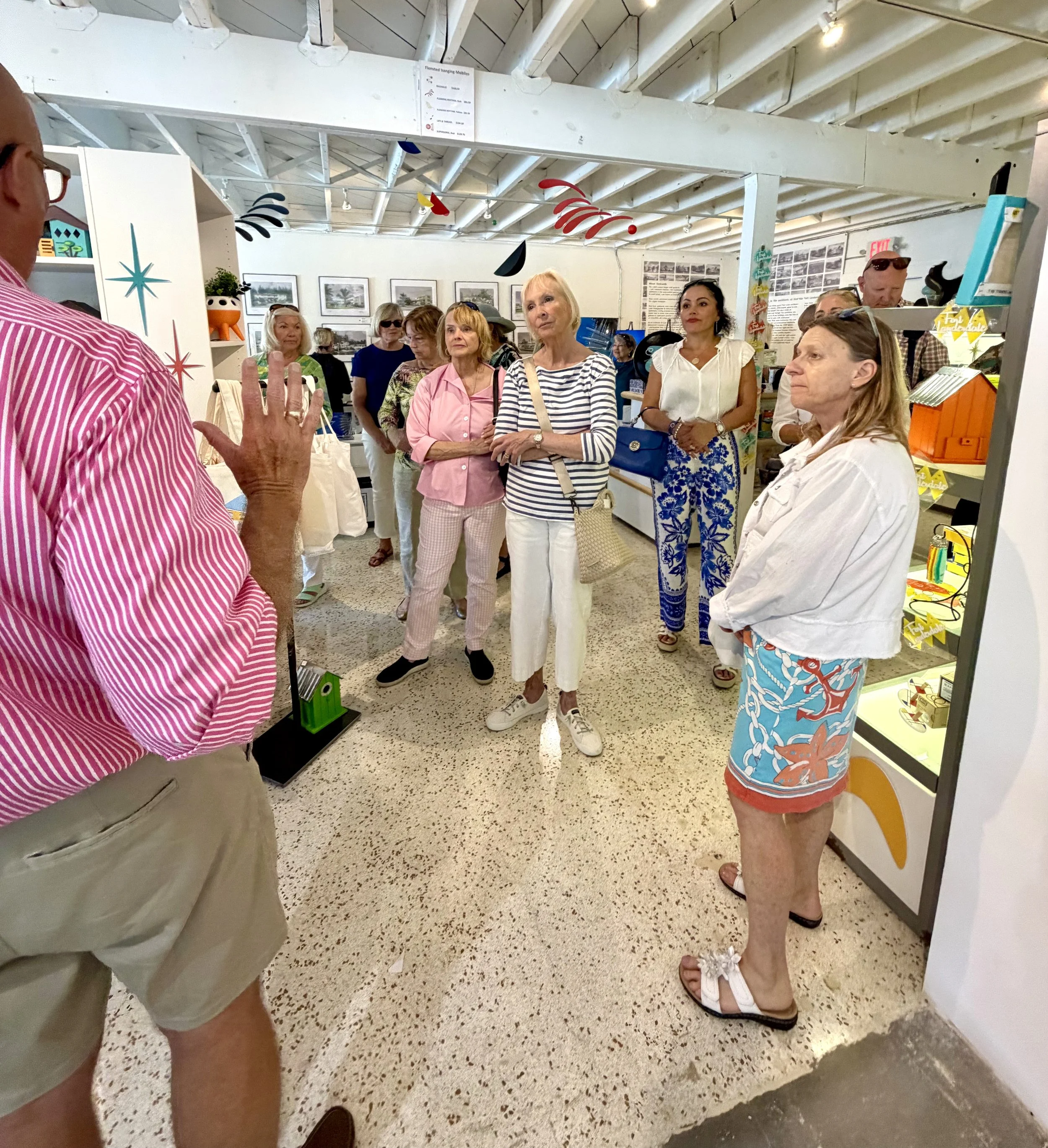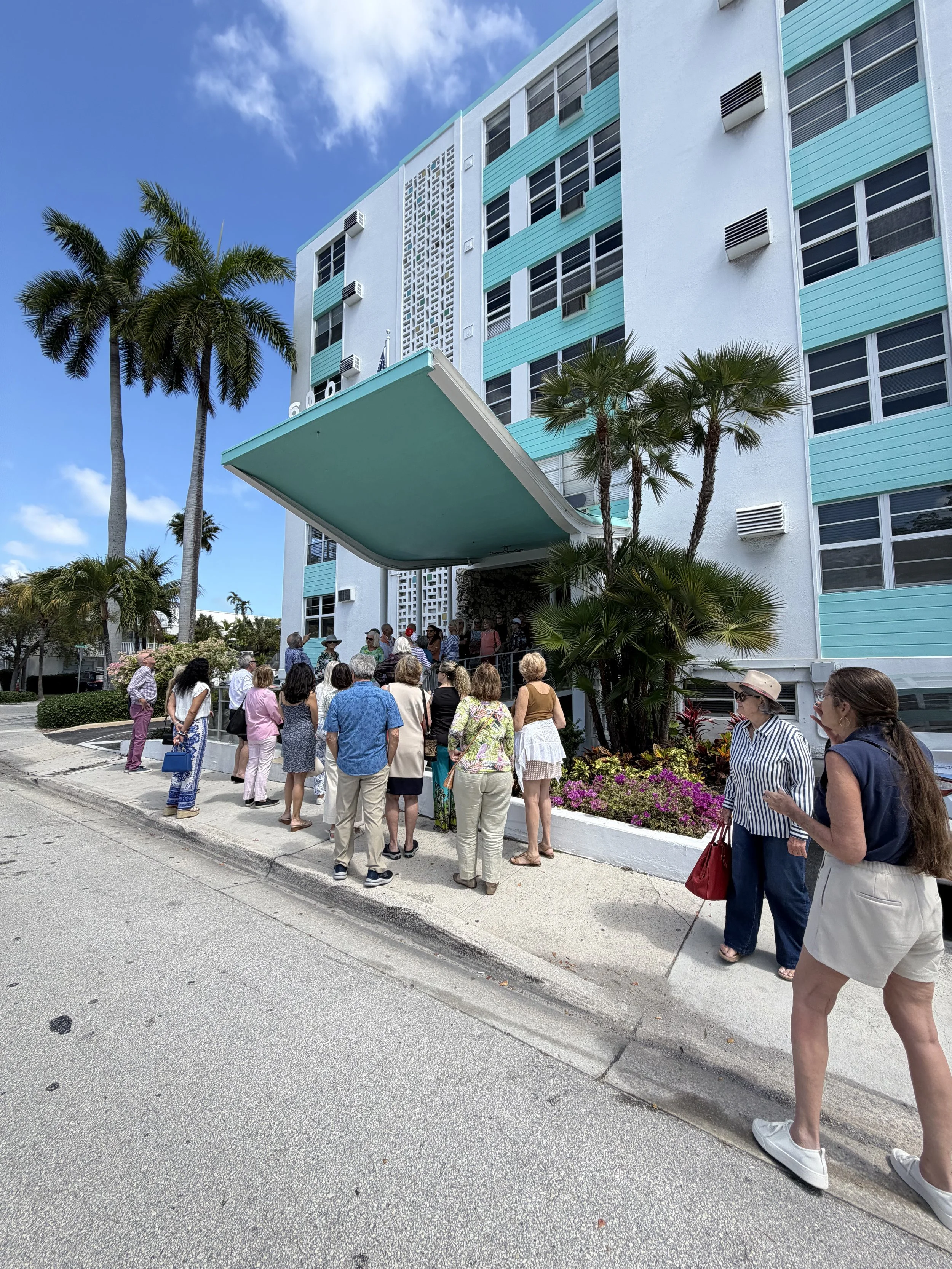 Gallery 600 welcomed guests from the Coral Ridge Bus Tour as they explored Fort Lauderdale Beach and its rich architectural history. The tour included a stop at the gallery, where visitors experienced artwork inspired by the city’s iconic mid-century buildings and enjoyed a closer look at this unique moment in time.