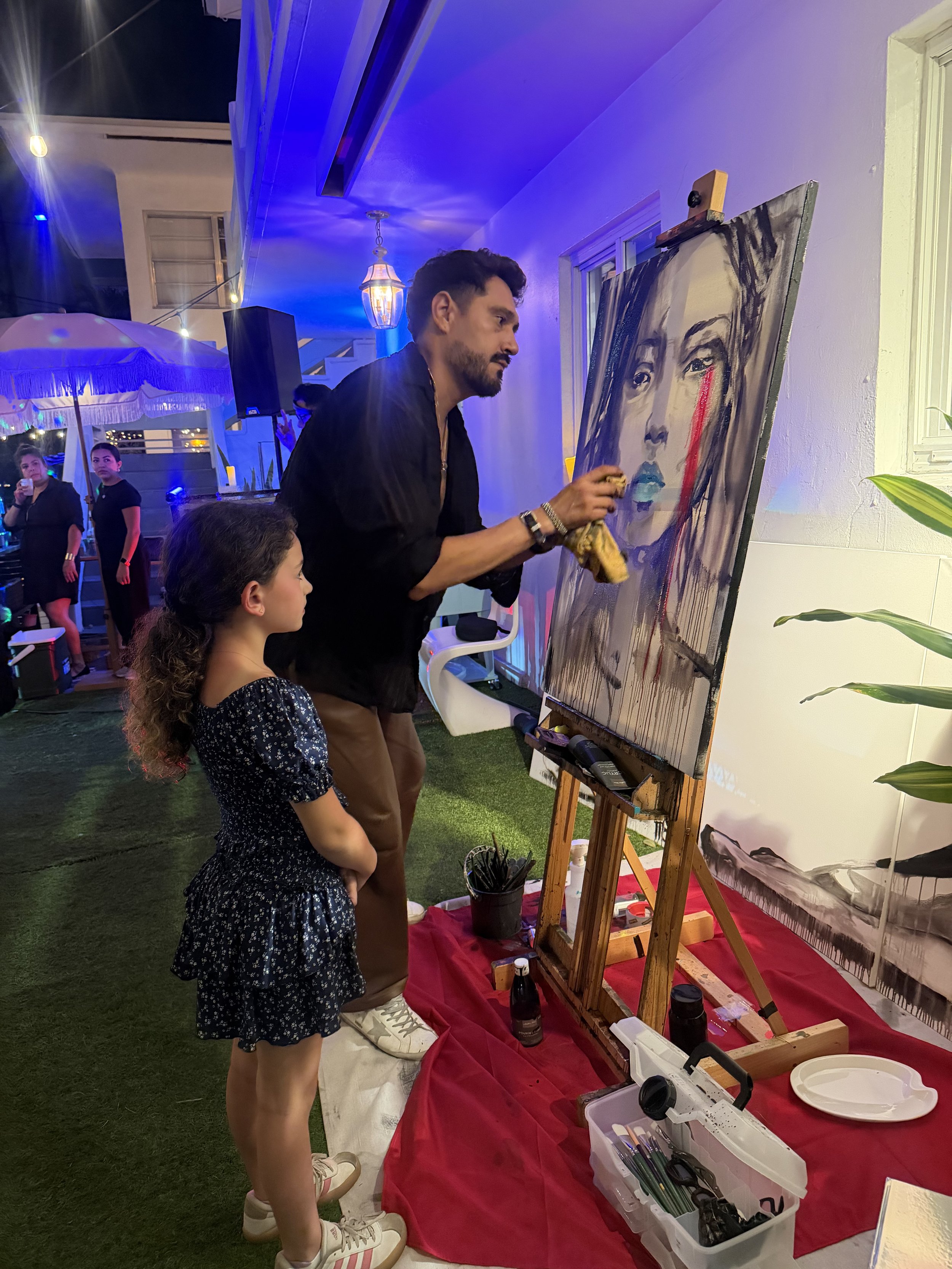 The event brought together artists, collectors, and members of the South Florida community for a night of connection, conversation, and creative expression. With drinks, music, and bold visual storytelling throughout the gallery, the evening blurred the line between exhibition and performance.